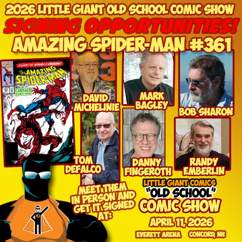 For 2026, the Little Giant Comics Old School Comic Show is honored to dedicate our event to Jim Shooter — legendary writer, editor, and longtime friend of our show. Jim has been more than a guest; he’s been part of our extended family, returning year after year to share his wit, wisdom, and unmatched storytelling with fans.